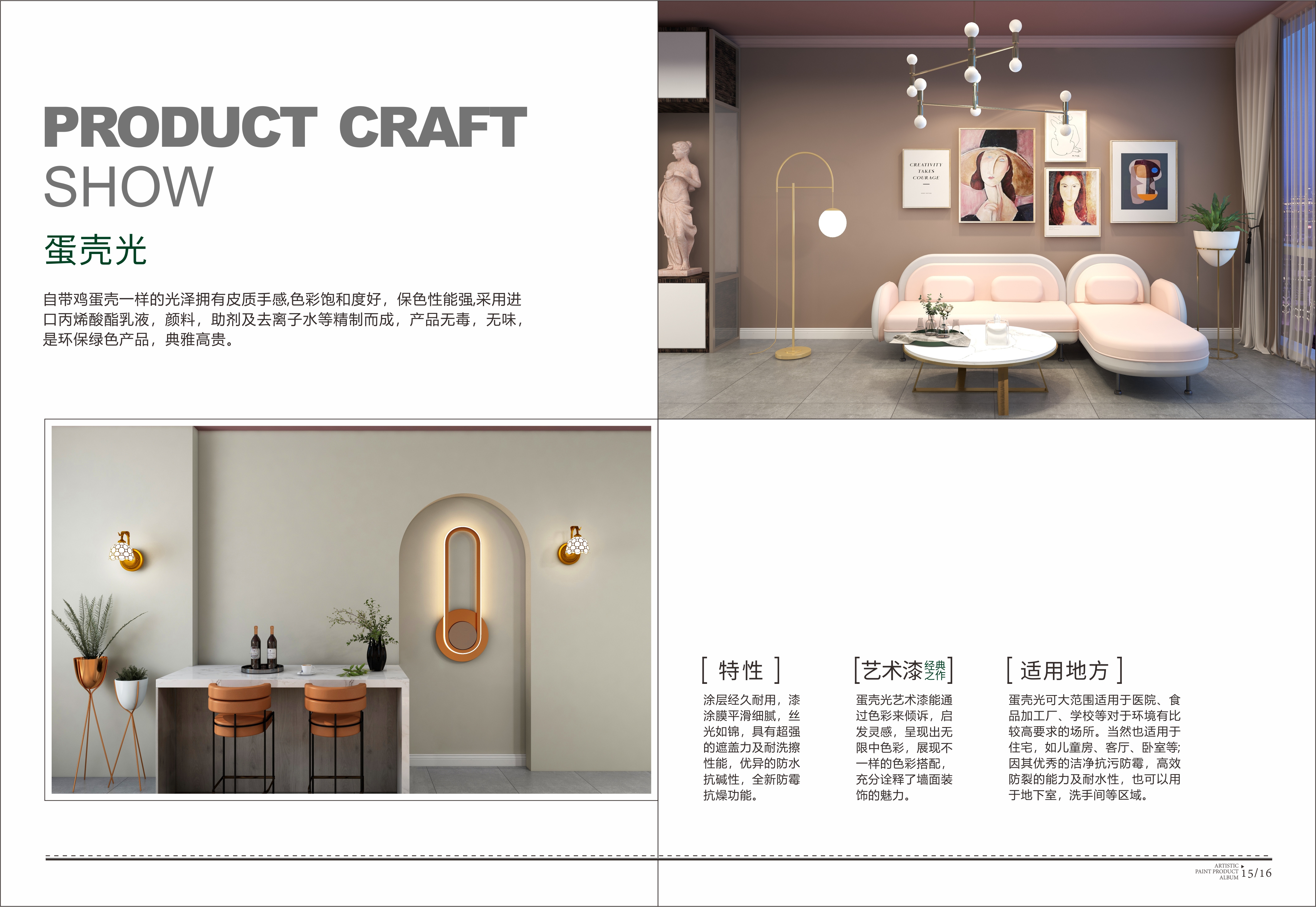 自帶雞蛋殼一樣的光澤擁有皮質手感,色彩飽和度好,保色性能強,采用進口丙烯酸酯乳液,顏料,助劑及去離子水等精制而成,產品無毒,無味,是環保綠色產品
